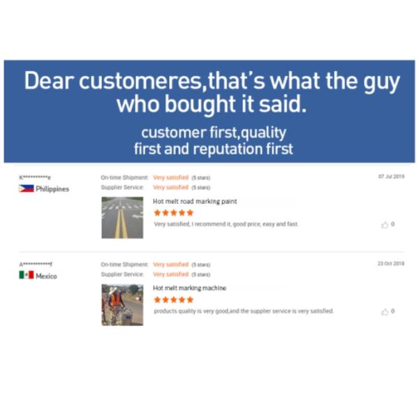 *** Our company is a professional manufacturer of hot-melt marking paints for 30 years, with an annual output of 250,000 tons, accounting for 25% of China's marking paint market. At the same time, it undertakes marking projects in many domestic cities and is currently exporting hot-melt markings. Coatings all over the world, our company has independent R & D team, will be customized according to the requirements of customers in different countries customized coatings, the current major export markets are Africa, Southeast Asia, and South America and so on.